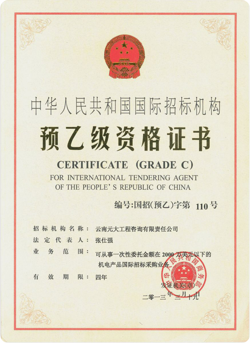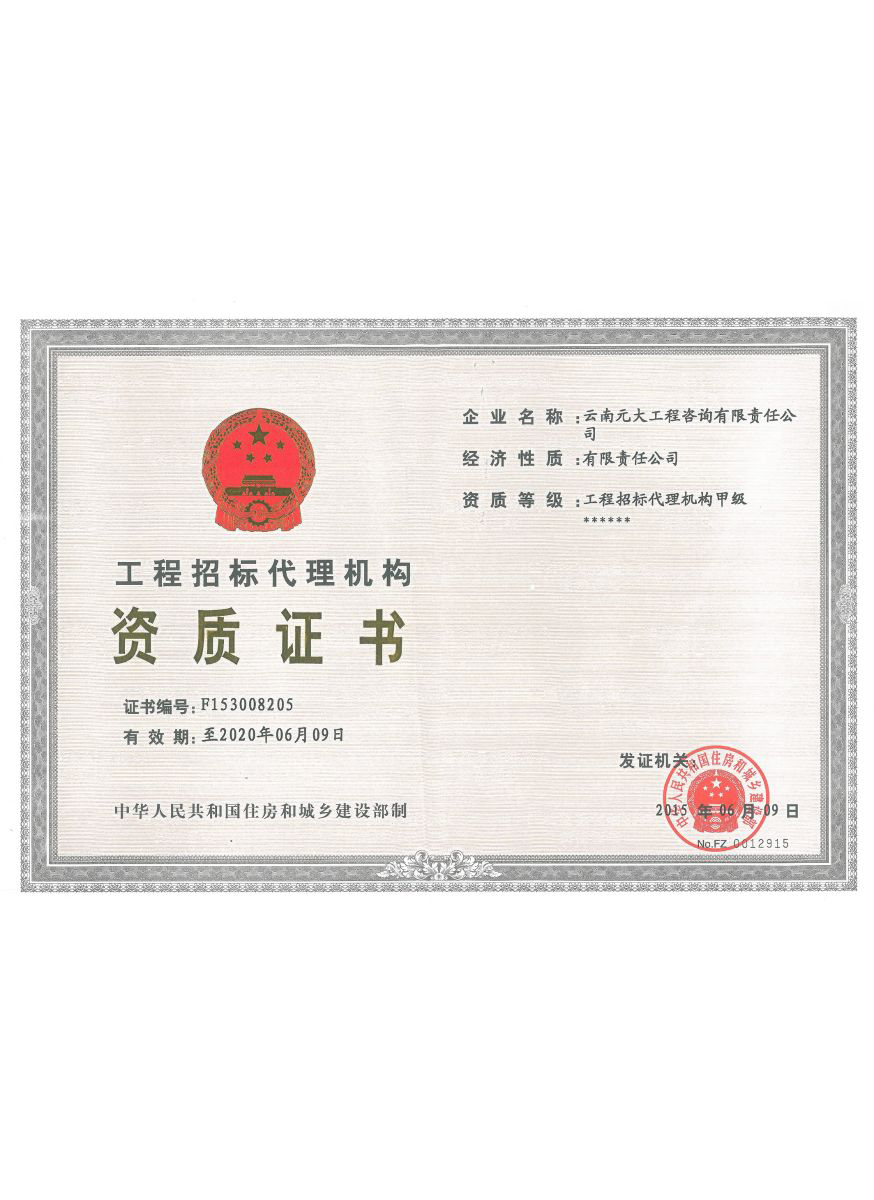 公司是云南省招標投標行業協會會長單位,現為云南省住建廳信用評級招標代理機構AAA級單位。公司先后榮獲住建部頒發(fā)的“工程招標代理機構甲級資質證書”、財政部頒發(fā)的“政府采購代理機構甲級資格證書”,并在財政部及中國政府采購網“政府采購代理機構名單”登記備案、獲得國家發(fā)展改革委頒發(fā)的“中央投資項目招標代理機構甲級資格證書”、商務部頒發(fā)的“國際招標機構預乙級資格證書”、機電產品國際招標電子交易平臺頒發(fā)的“機電產品國際招標電子交易證書”、國家國防科技工業局頒發(fā)的“軍工涉密業務咨詢服務安全保密條件備案證書”。公司已通過ISO9001:2015質量管理體系認證、ISO14001:2015環(huán)境管理體系認證、ISO45001:2018職業健康安全管理體系認證。納稅信用評價已連續(xù)三年被評為A級......